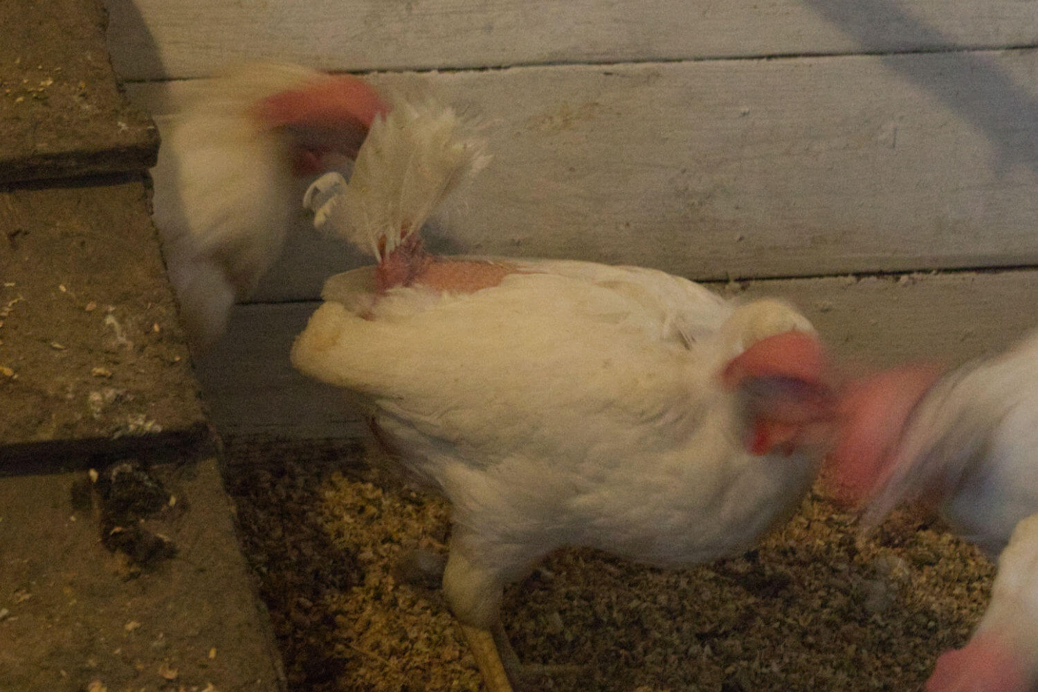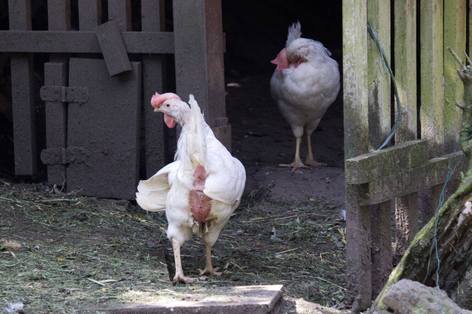 Jährlich werden in Deutschland 49 Millionen Legehennen gehalten und geschlachtet. Der Verein Hühnerrettung NRW schafft es, 10.000 Hennen pro Jahr zu retten, das ist im Verhältnis nicht viel, aber immer noch besser, als gar nichts zu tun. Bei Lucy Birkenkamp und Martina Stenzler waren gerade einige Hühner neu eingetroffen. Man konnte sie sofort an ihrem erbärmlichen Zustand erkennen, jedoch wird sich dies dank des guten Futters, der liebevollen Pflege und der artgerechten Haltung schnell ändern.